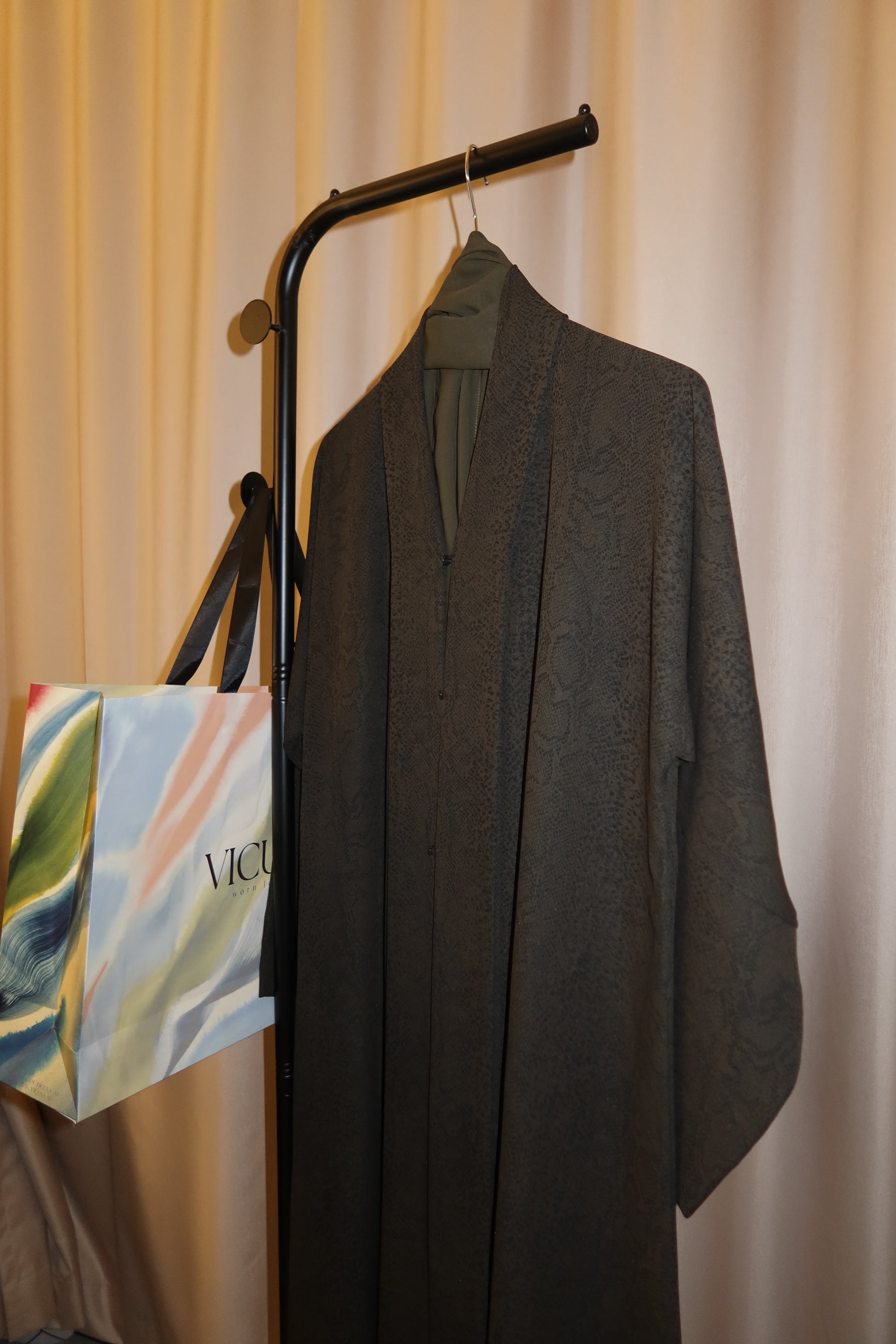 Crafted from Korean jacquard with a subtle snake-inspired texture, the Liwa Abaya blends elegance and comfort. The fabric is soft yet structured, giving you a timeless look that works for both casual and formal occasions.